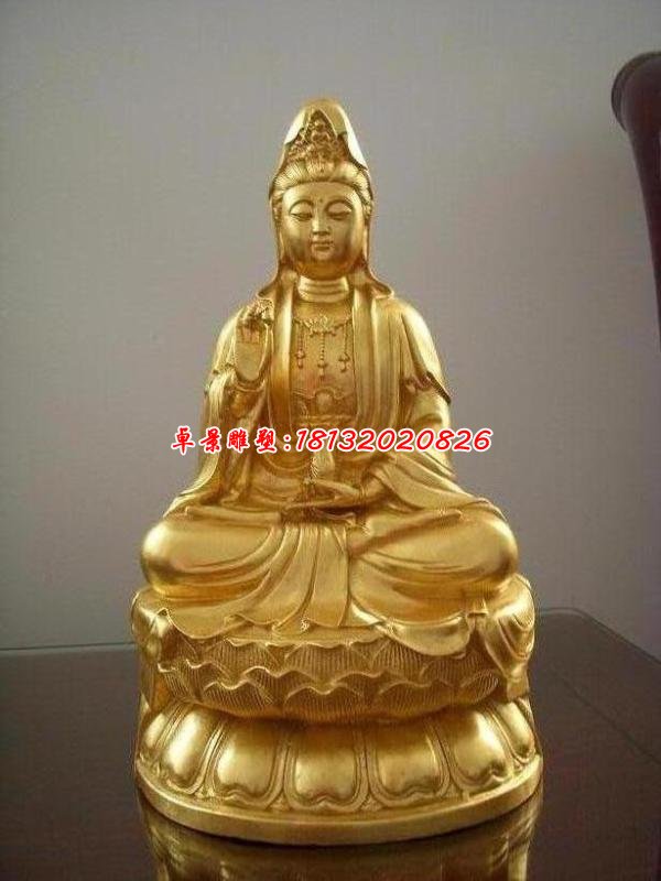 名稱:觀音銅雕,坐式觀音菩薩銅雕,鎏金銅觀音菩薩雕塑