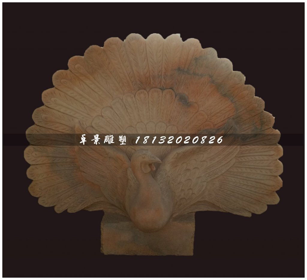 名稱:孔雀開屏石雕,晚霞紅動物石雕