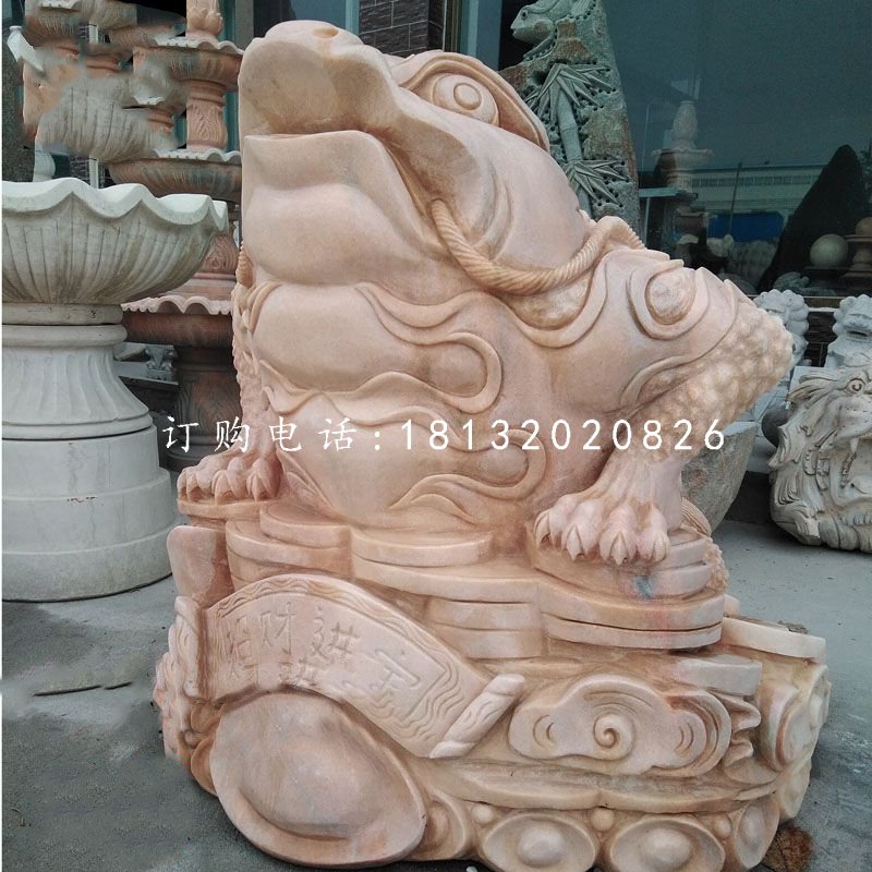 石雕金蟾的形象在我們中國(guó)由來(lái)已久,深入人心。一直以來(lái),由于金蟾美好的寓意,各種石雕金蟾造型的制品在人們身上、宅中,造福大眾。石雕金蟾是招財(cái)?shù)娜皤F,它最重要的寓意就是財(cái)源滾滾。根據(jù)這一寓意,各種石雕金蟾的造型都圍繞與金幣、元寶有關(guān)。有古老的漢族神話(huà)傳說(shuō),是劉海收服金蟾,用來(lái)造福百姓。所以也有一種叫做劉海戲金蟾的造型的金蟾,寓意也是招財(cái)進(jìn)寶。還有一種金蟾口中可以含住錢(qián)幣,寓意是口吐金錢(qián),造型十分生動(dòng)可愛(ài)。